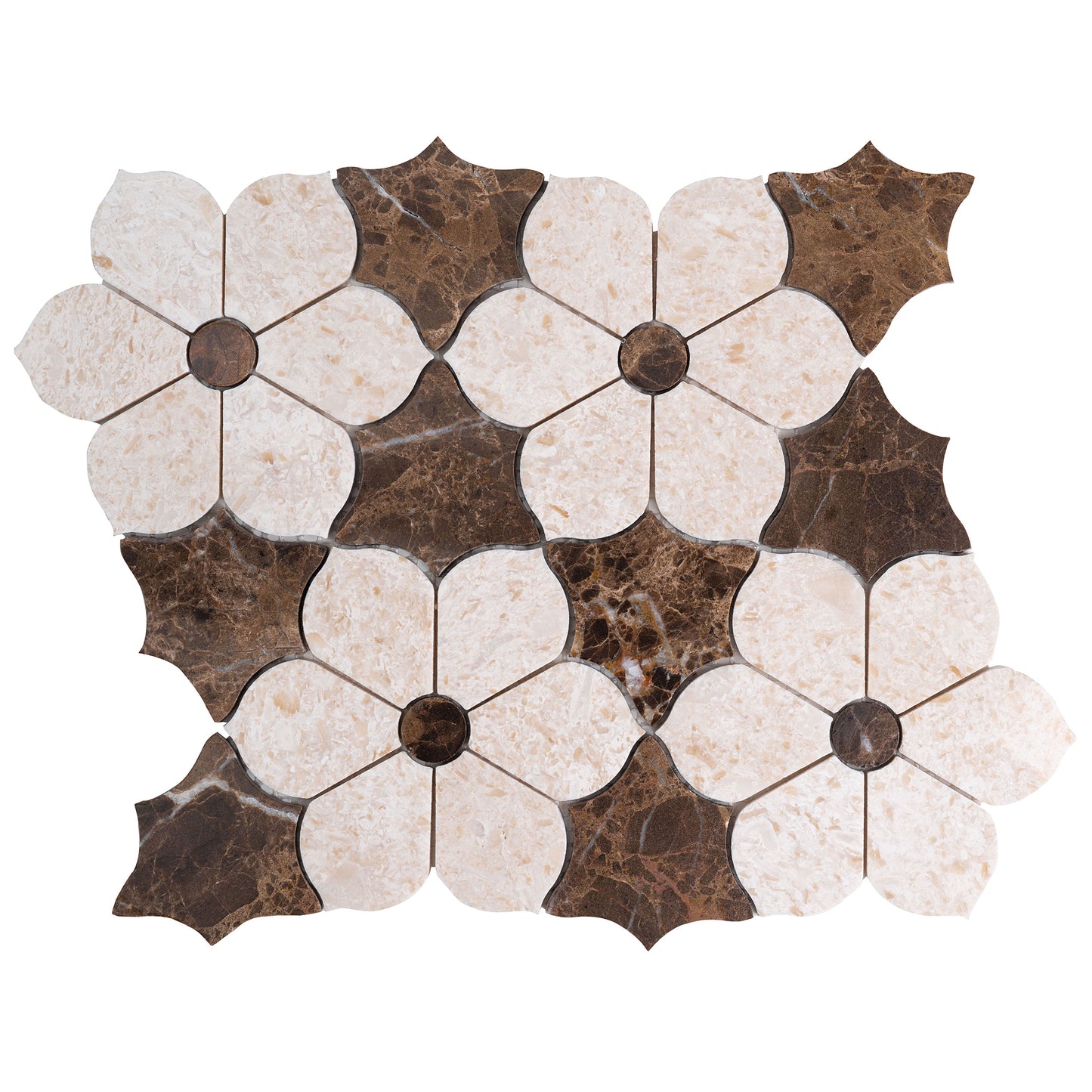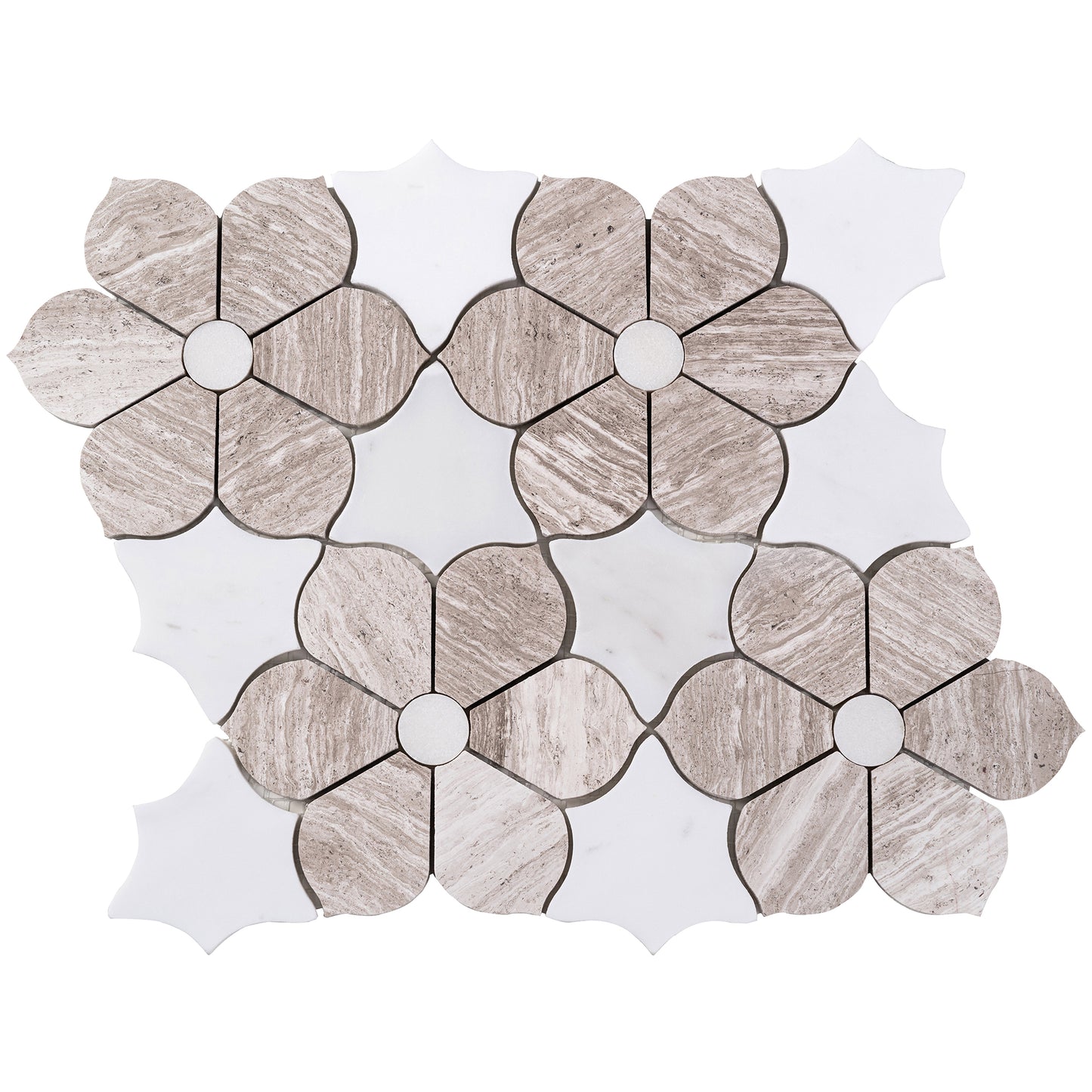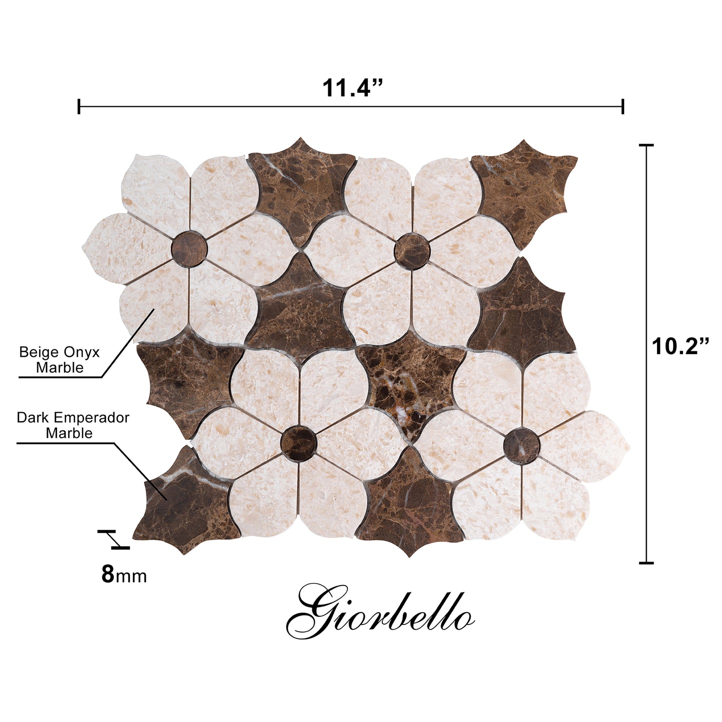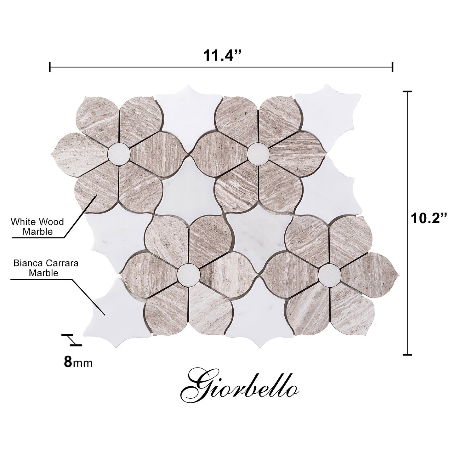 10.2” x 10.2” Marble Mosaic Tile - Wooden Beige & White