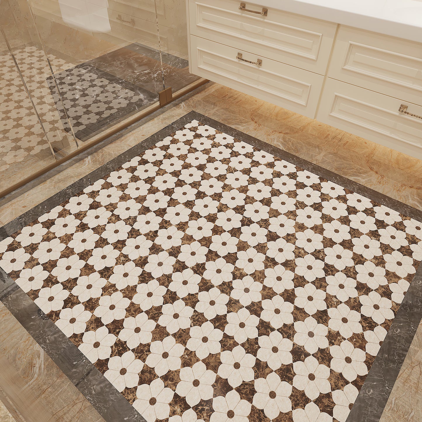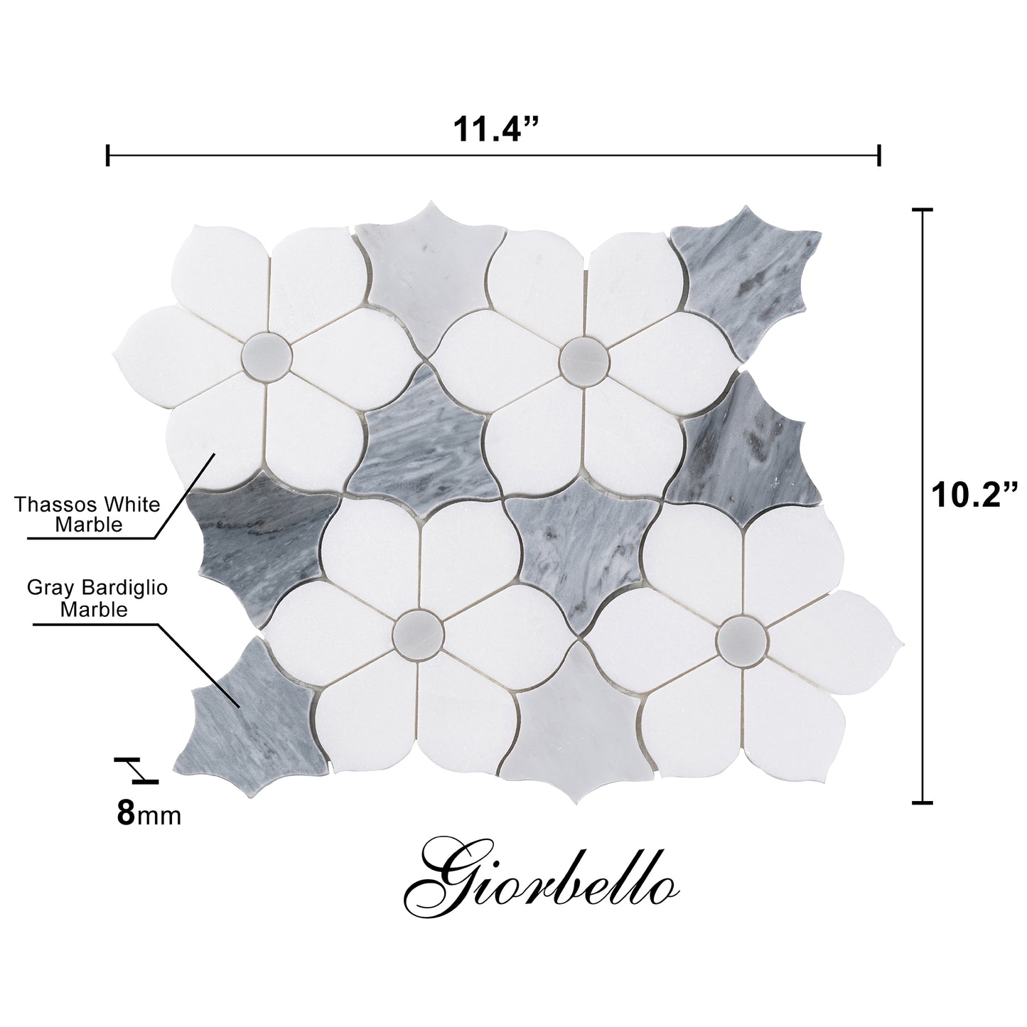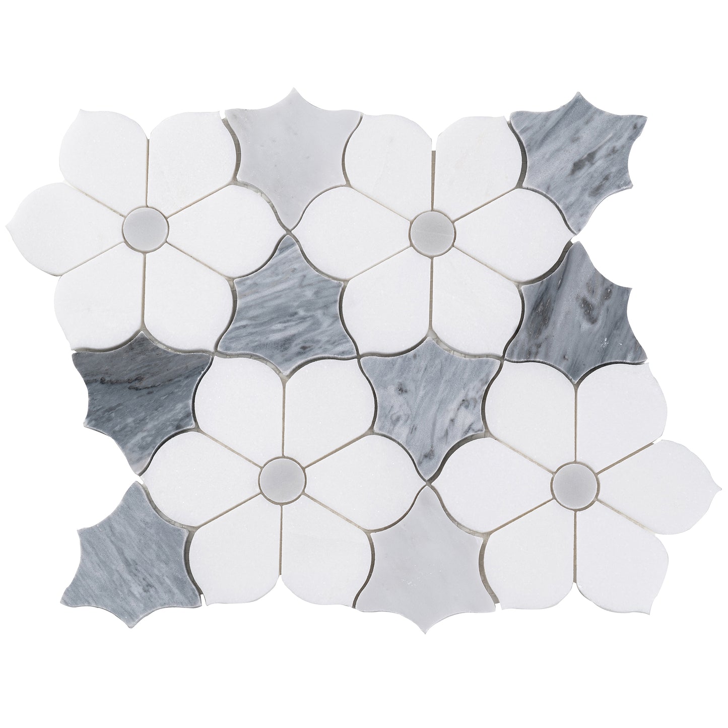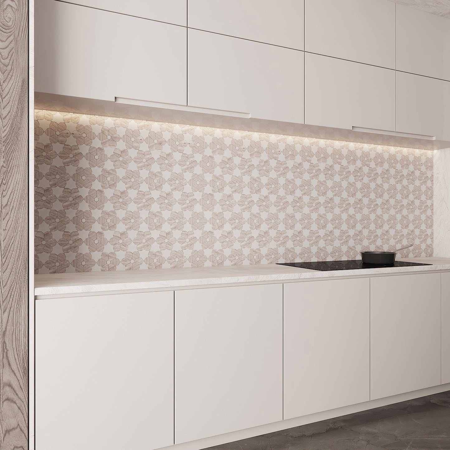 10.2” x 10.2” Marble Mosaic Tile - Wooden Beige & White