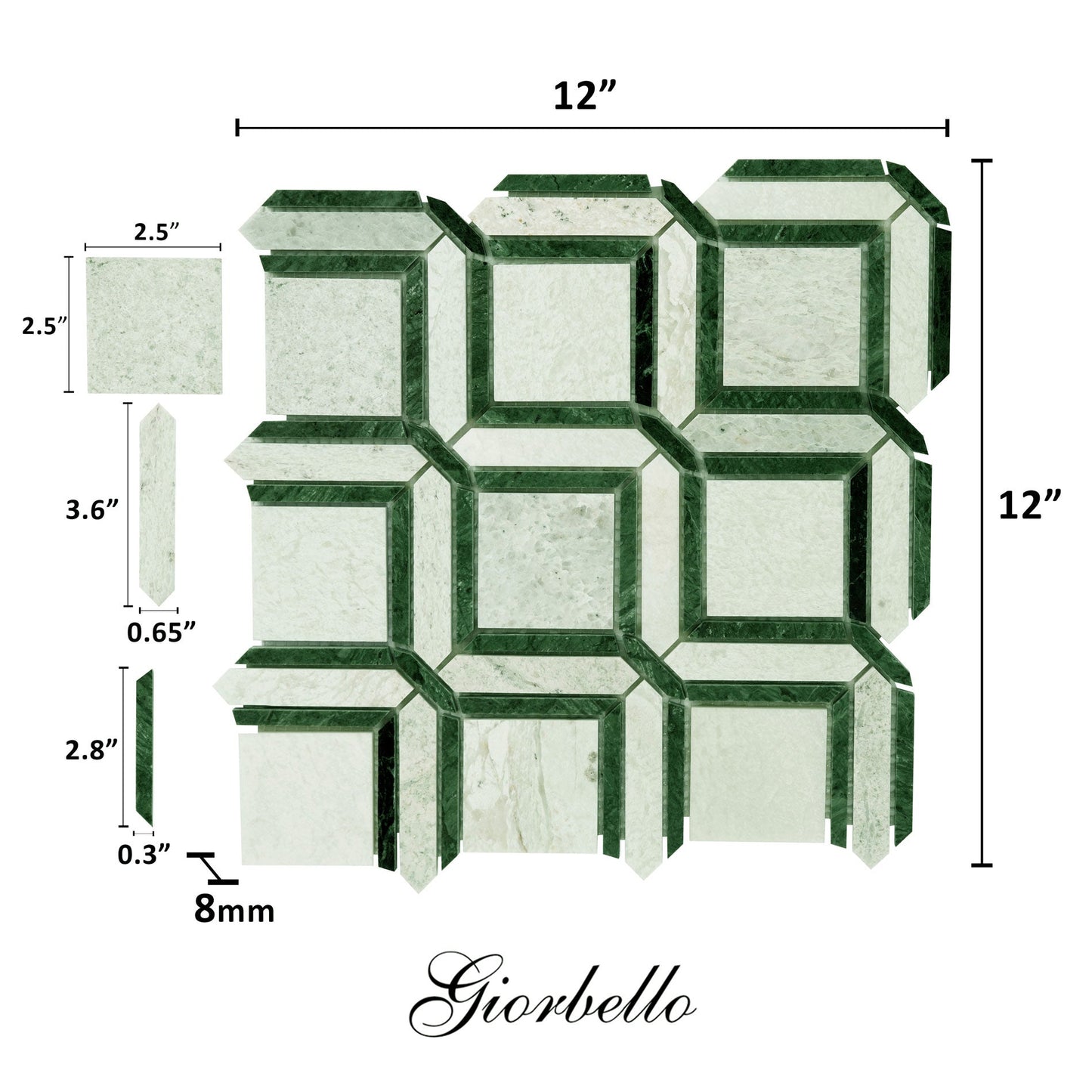 Marble tiles are revered for their timeless beauty and elegance. With a wide range of colors and unique veining patterns, they bring a touch of luxury to any space. Marble is durable, long-lasting, and versatile, suitable for flooring, countertops, accent walls, and more. Its cool temperature and classic appeal have made it a sought-after choice for centuries. Incorporating marble tiles adds value to a property and creates a sophisticated atmosphere. Introducing Giorbello's exquisite Framed Square Mosaic Tile. This particular tile collection showcases the perfect blend of modern design and timeless elegance. The Framed Square Mosaic Tile features a captivating arrangement of square-shaped tiles arranged in a framed pattern, creating a visually stunning mosaic design.