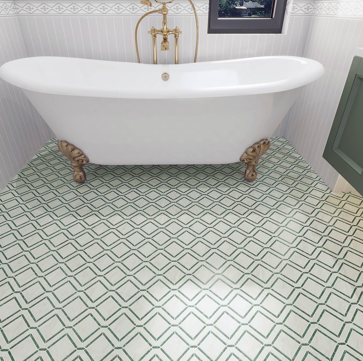 12” x 12” Marble Framed Squares Mosaic Tile - Ming Green