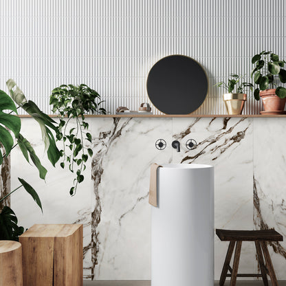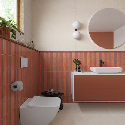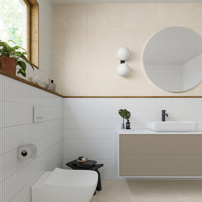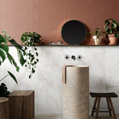 The Lingot Porcelain Wall Tile combines contemporary design with high durability, offering a sleek, refined aesthetic with a dynamic 3D effect. Inspired by the trend of covering walls with vertically grooved motifs, this tile features straight lines arranged in a rectangular grid pattern, simulating lattices or grids. The 3D texture adds visual depth and interest, making it an ideal choice for creating statement walls in any space you wish to decorate.