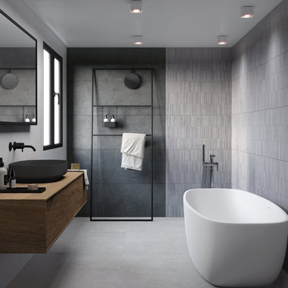 Giorbello Silis Collection, a refined cement-look porcelain tile with soft textures. Available in Blanco and Black, its compact, minimalist graphics offer timeless style beyond trends. Its clean, modern lines and parallel stripes crafted to produce a gentle, flowing movement across surfaces. Made for both beauty and longevity, Silis is ideal for bathroom walls, kitchen backsplashes, shower enclosures, and living room floors.