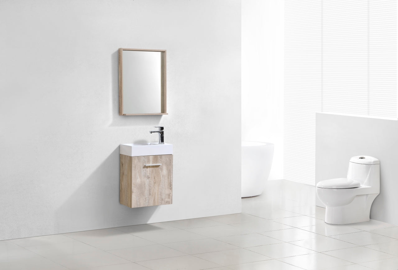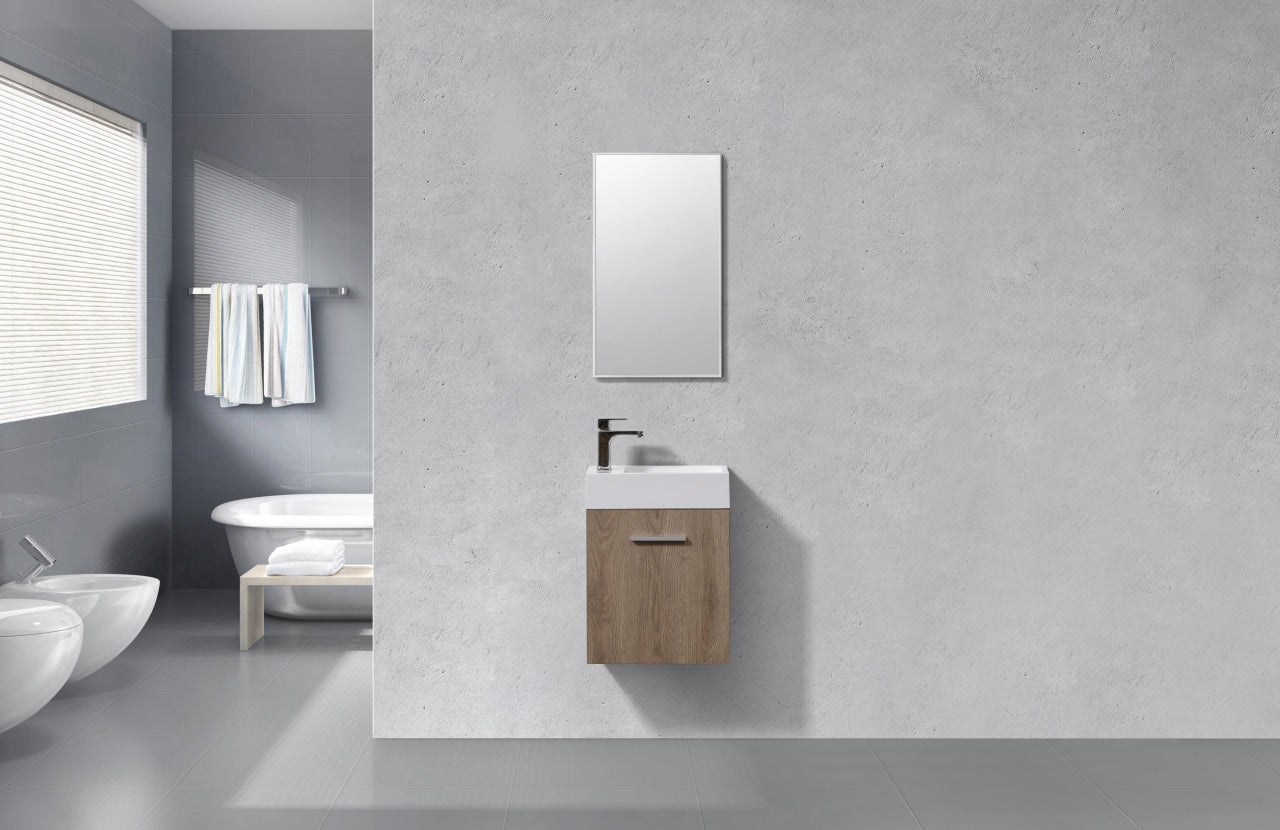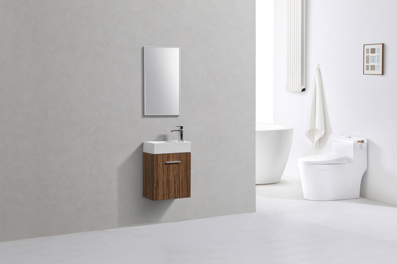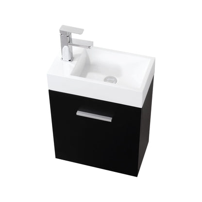 The Bliss 18" Black Wall Mount Modern Bathroom Vanity is a striking addition to any contemporary bathroom, offering both functionality and style. Its bold black finish provides a dramatic contrast against lighter tile and bathroom surfaces, making it a perfect choice for modern, sleek designs. The wall-mounted structure creates a floating effect, making your bathroom appear more spacious while providing easy access to floor space. With an 18-inch width, this vanity is ideal for smaller bathrooms or powder rooms, offering ample storage while maintaining a compact footprint that blends effortlessly with various tile types and patterns.