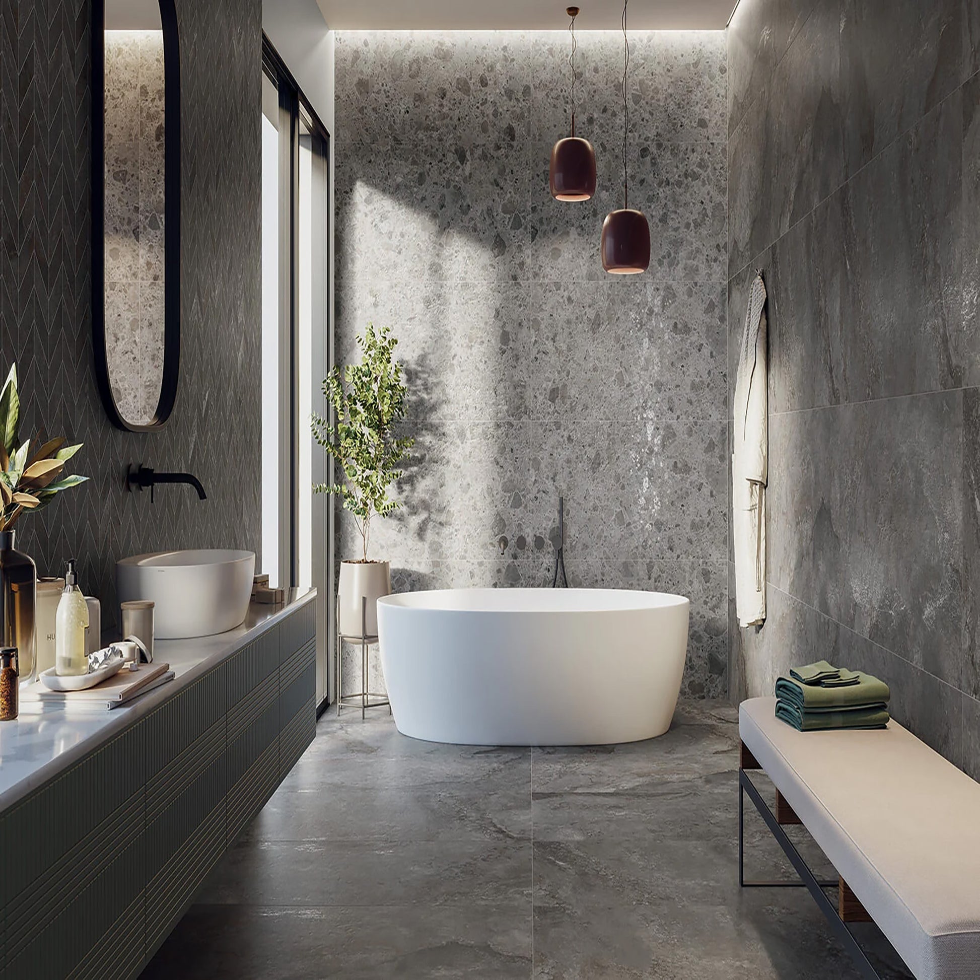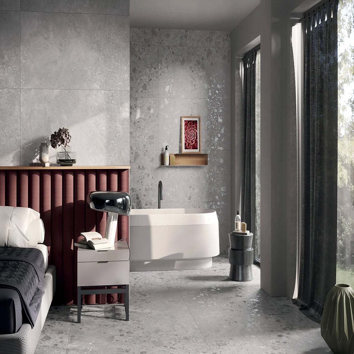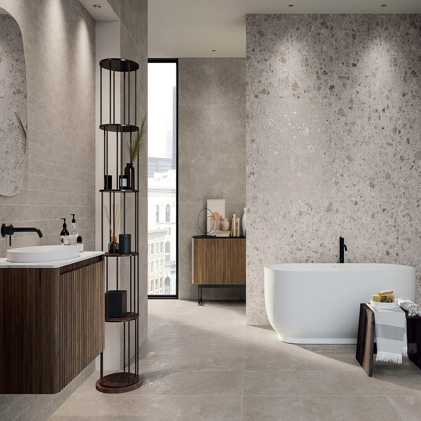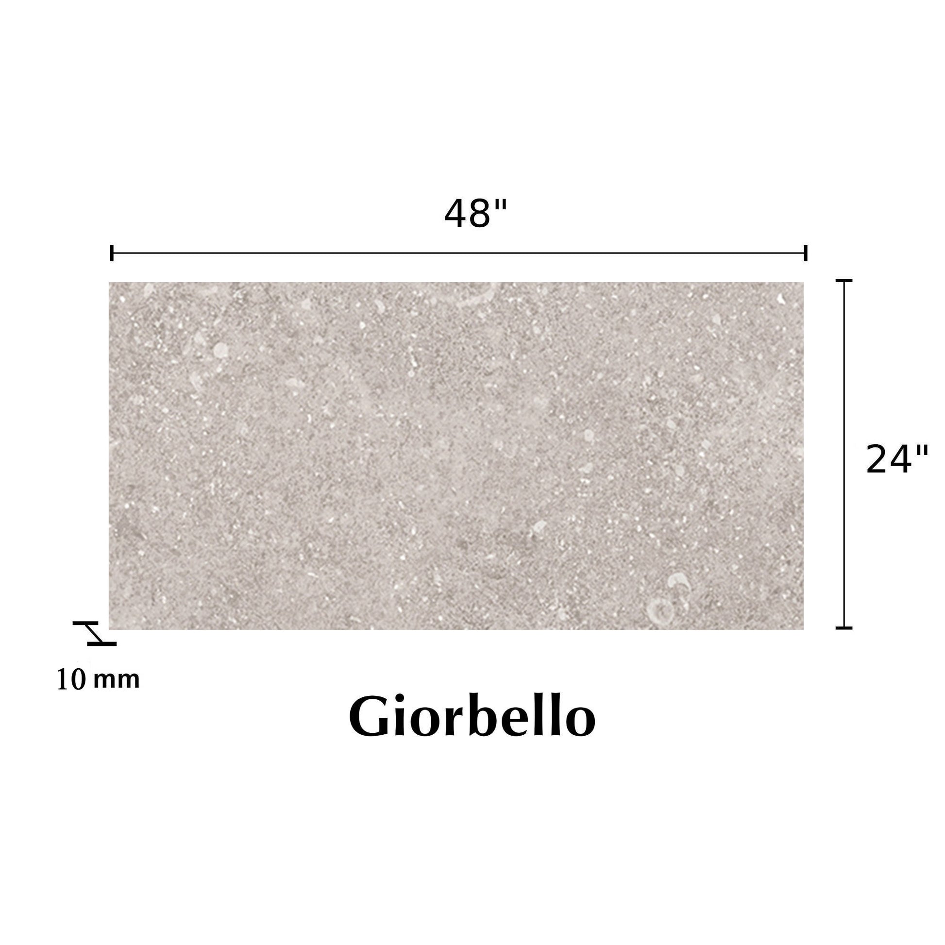 Step into the enchanting ambience of Italy and create an unforgettable impression with Giorbello Ambience tiles. Inspired by the breathtaking landscapes of Italy, this collection features Natural and Terrazzo designs in four exquisite colors each, that can be seamlessly combined to showcase the essence of Italian natural beauty. With a generous size of 24 in. x 24 in. rectified at a 10 mm thickness, these tiles strike the perfect balance between durability and elegance. All tiles are made from high-quality Italian porcelain, ensuring exceptional durability and performance for both indoor and outdoor uses, and residential and commercial applications. They are resistant to scratches, stains, and moisture, ensuring long-lasting beauty even in high-traffic areas. Unleash your creativity and discover endless design possibilities. Mix and matching the natural and terrazzo tiles in the harmonious blend of colors to effortlessly create a unique design that reflects your style. Elevate your living spaces with the unmatched allure of Italian-made porcelain tiles, renowned for their flawless craftsmanship, remarkable durability, and striking design.