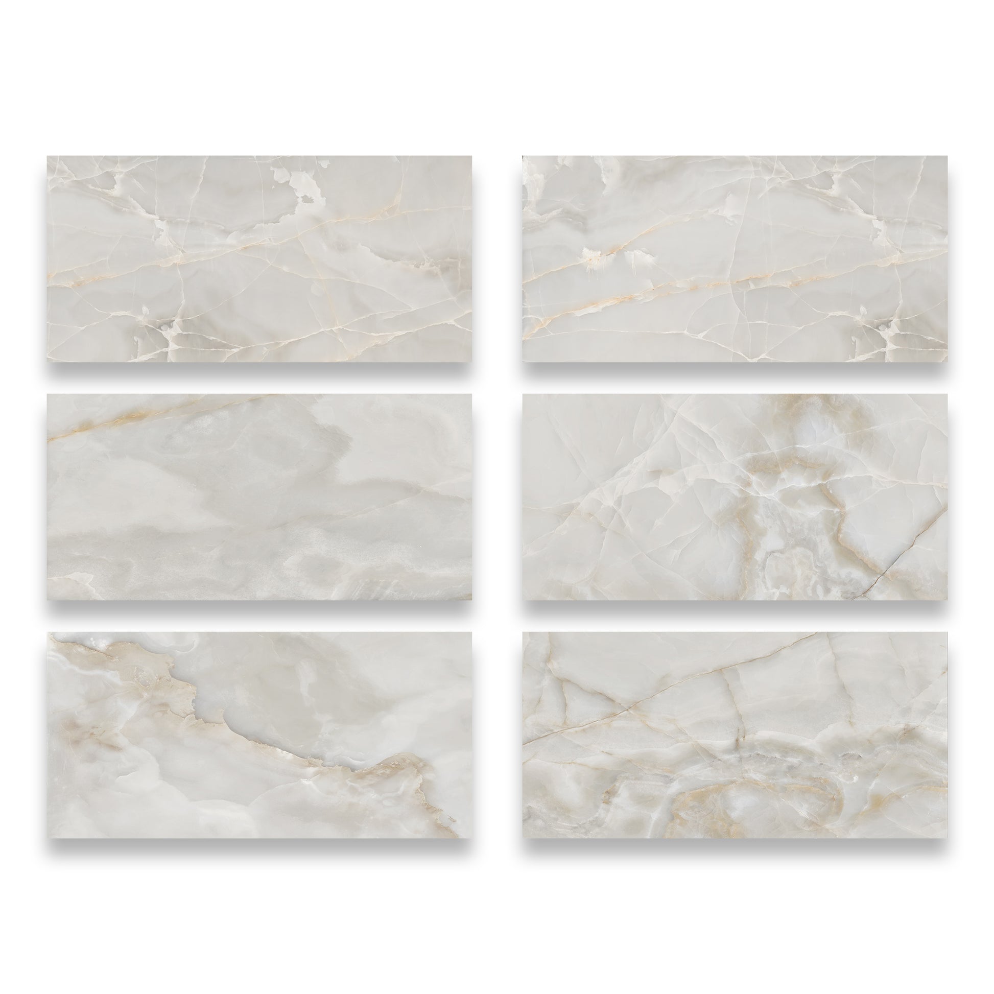 Elevate your space with Giorbello's American Onyx Collection in a matte porcelain finish. Available in Grey, Ivory, and Beige, these tiles feature soft white and cream tones highlighted by delicate natural veining for a clean and timeless style. The matte surface adds depth and a modern designer look, making rooms feel bright and refined. Perfect for bathrooms, floors, walls, and feature accents, enjoy the elegance of onyx with the low-maintenance performance of porcelain.