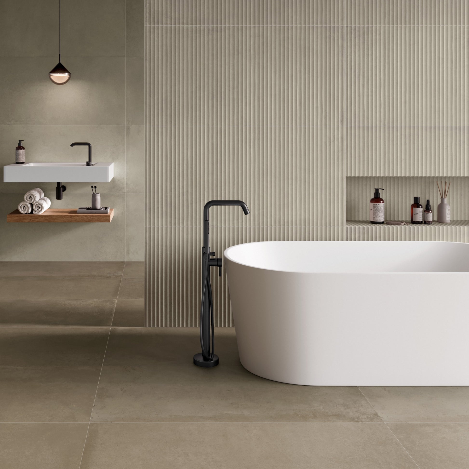 - Highlight: 3D cement-look porcelain tile with a refined matte finish. Subtle textures and clean lines create visual depth