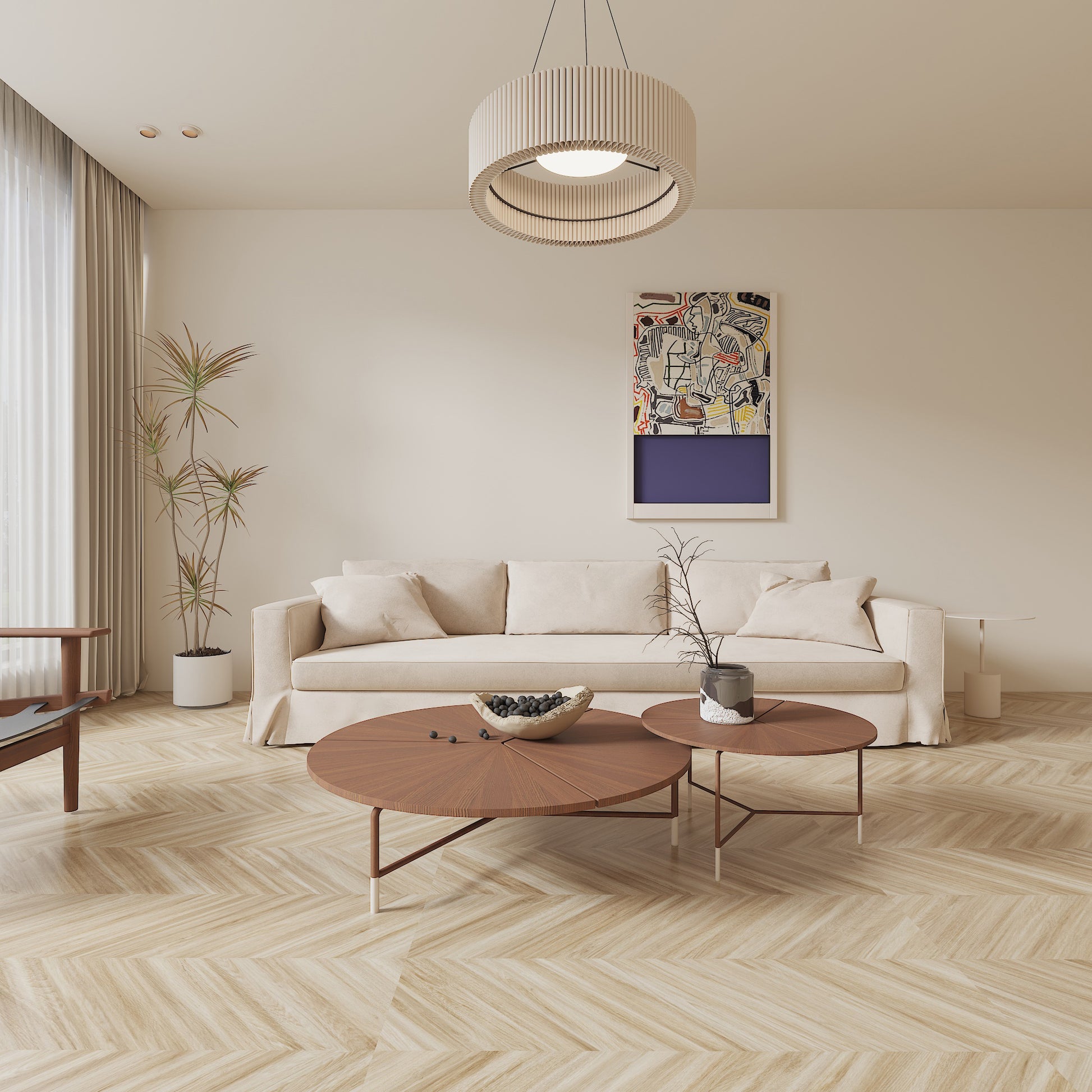 Giorbello's Nook Chevron Collection combines the warmth of natural wood with the strength of porcelain. Crafted in Spain, its chevron pattern adds dynamic movement and visual texture to any space. Ideal for both interiors and exteriors, this large-format 23.62 in. x 47.24 in. tile brings timeless beauty to areas where real wood can't go, such as kitchens, baths, and outdoor spaces-offering enduring style and performance.