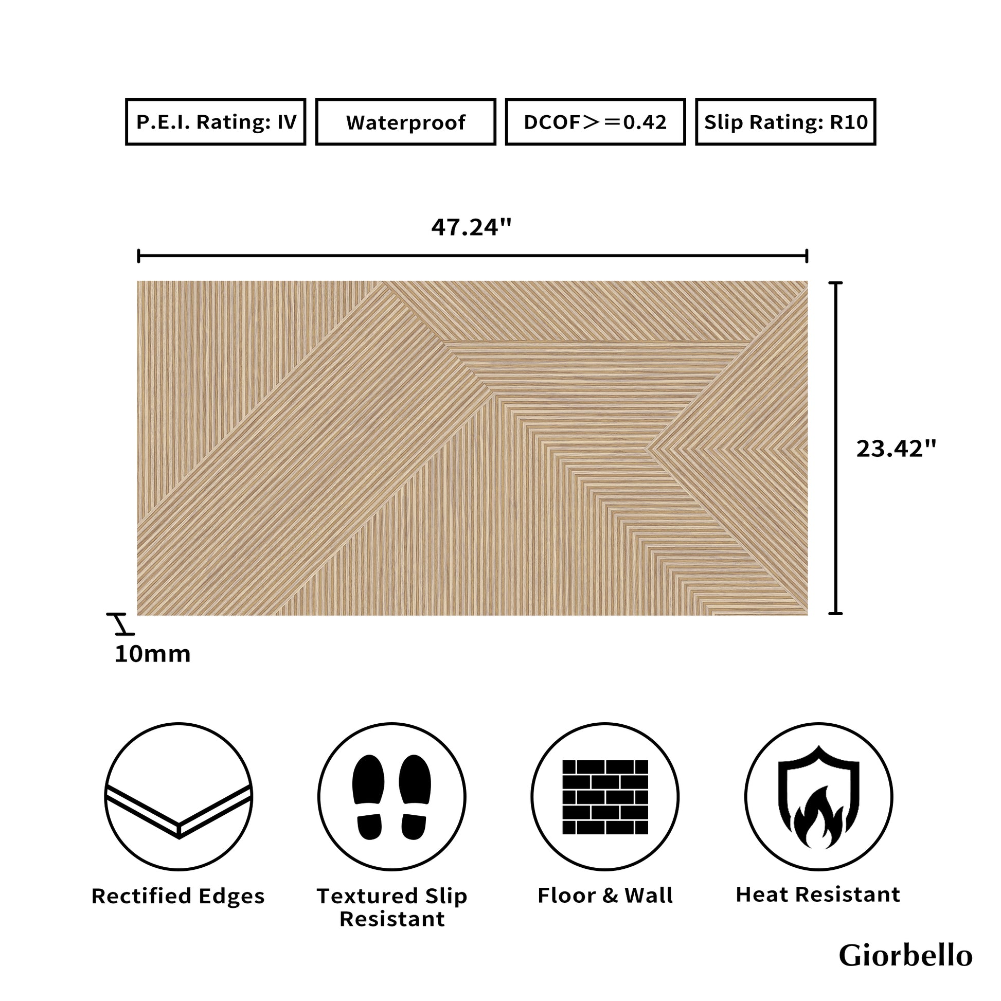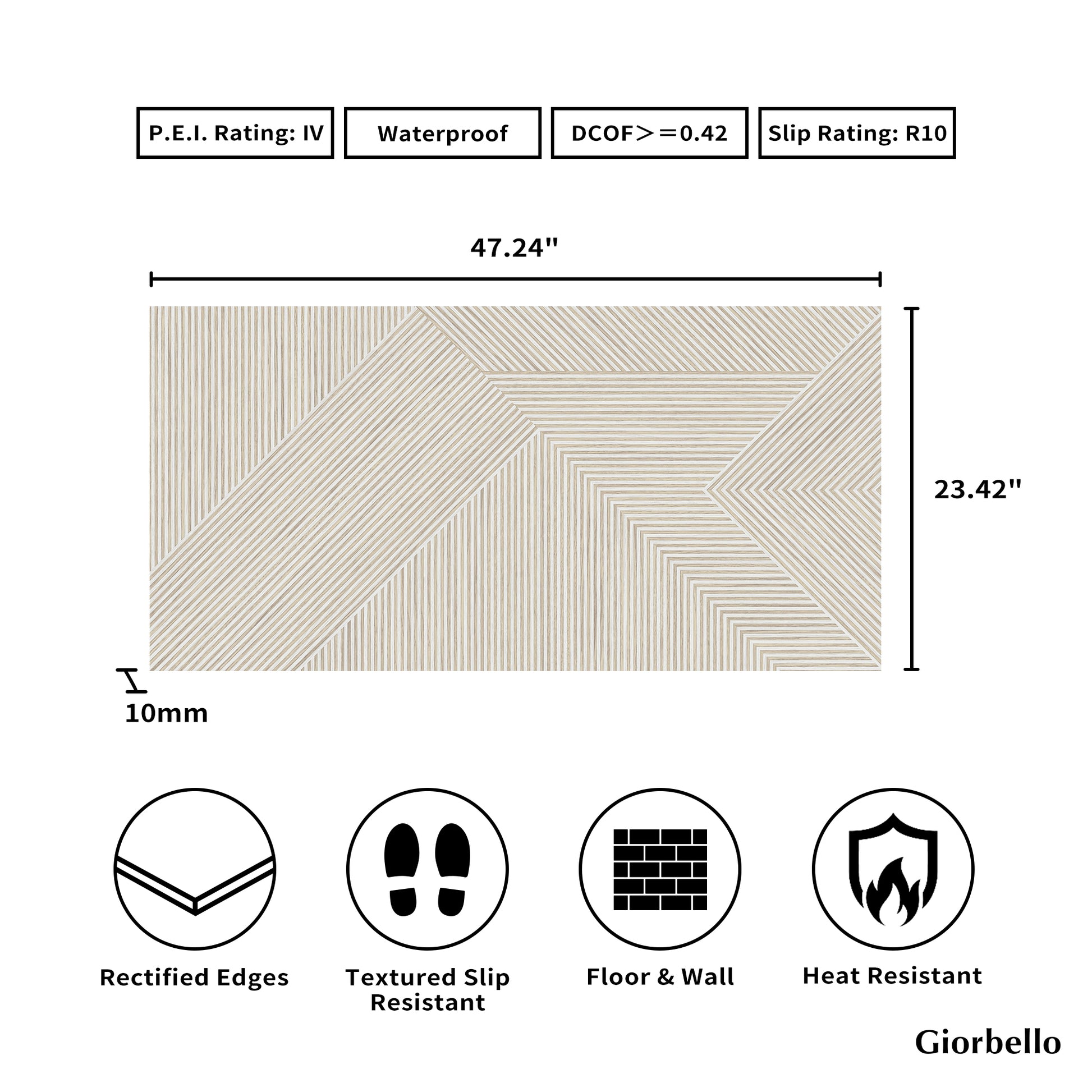 - Tile Size: 23.42” x 47.24"
