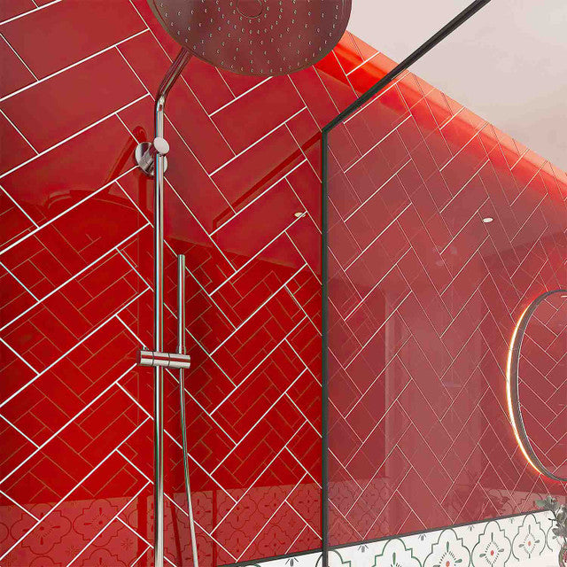 Ruby Red is a deep and rich shade of deep red that is darker and more intense than primary red. Giorbello glass tile – adding a touch of elegance and sophistication to any space. Crafted with first-quality glass, these tiles can help to maximize the natural lighting in a room, making it appear brighter and more spacious. Unlike other tile materials, glass tiles are resistant to fading and can maintain their vibrant color and glossy finish for years to come. They are also resistant to mildew and mold growth, which is perfect for use in bathrooms, kitchens, pools, and other high-moisture areas. A quick wipe-down with a damp cloth is all that is needed to keep them looking bright and fresh. From classic subway tiles to intricate mosaics, Giorbello glass tiles come in variety of sizes, shapes and colors that can be used to create endless design possibilities and are versatile enough to complement any style or décor. Whether you're looking to create a stunning backsplash or add a touch of elegance to your shower, our glass tiles can help you create a modern yet timeless look that cannot be replicated with any other material.