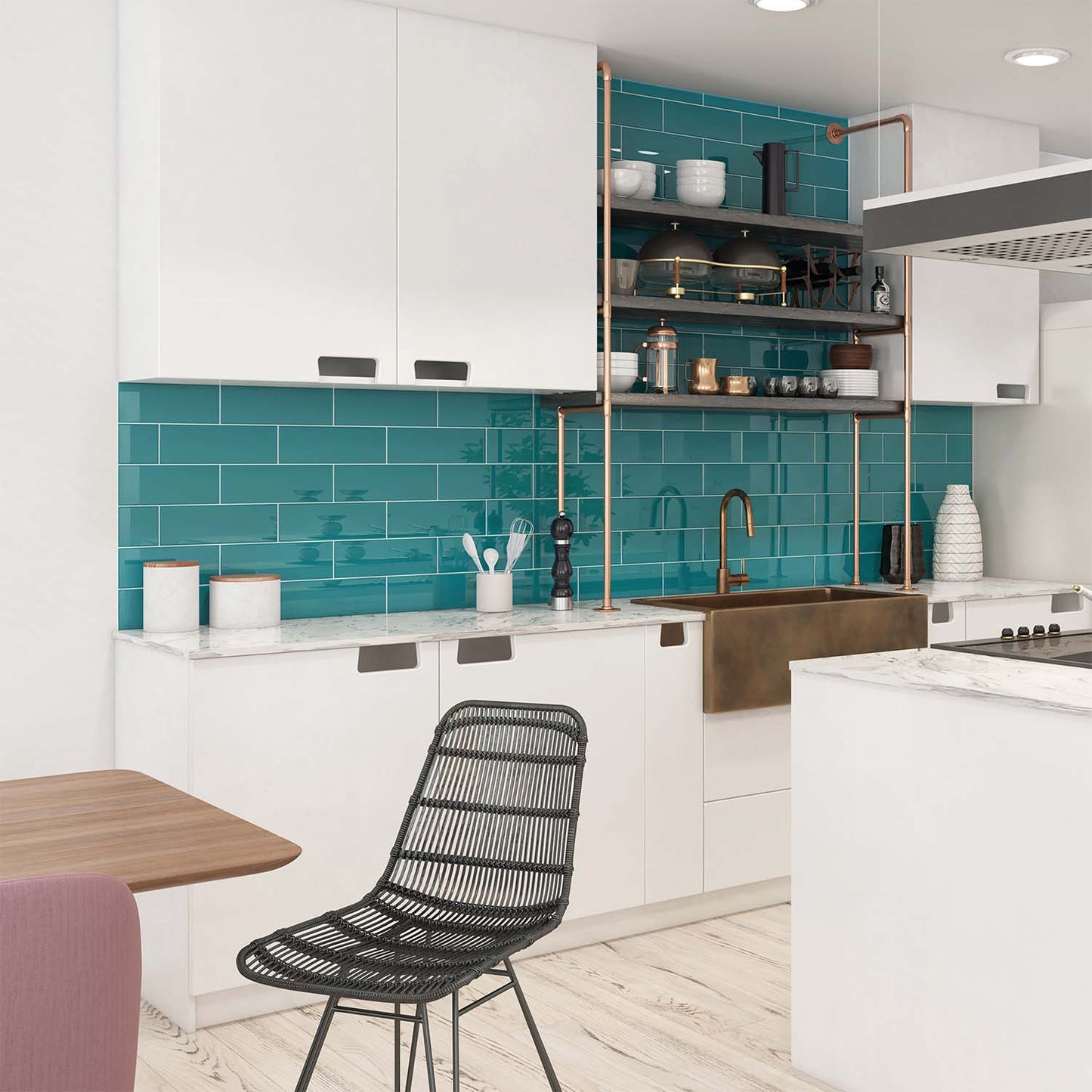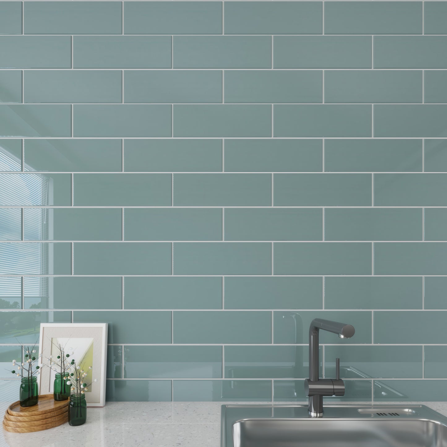 Giorbello's Teal is a blue-green color that exudes calmness, tranquility, and stability. It can play the part of retro or modern. The depth of glass and lightness of color create the excitement that sets glass tile apart from its more traditional counterparts. Our glass tile is 33% thicker than most tile on the market and features an affordable price and dazzling finish that resists rust, fire, and stains.