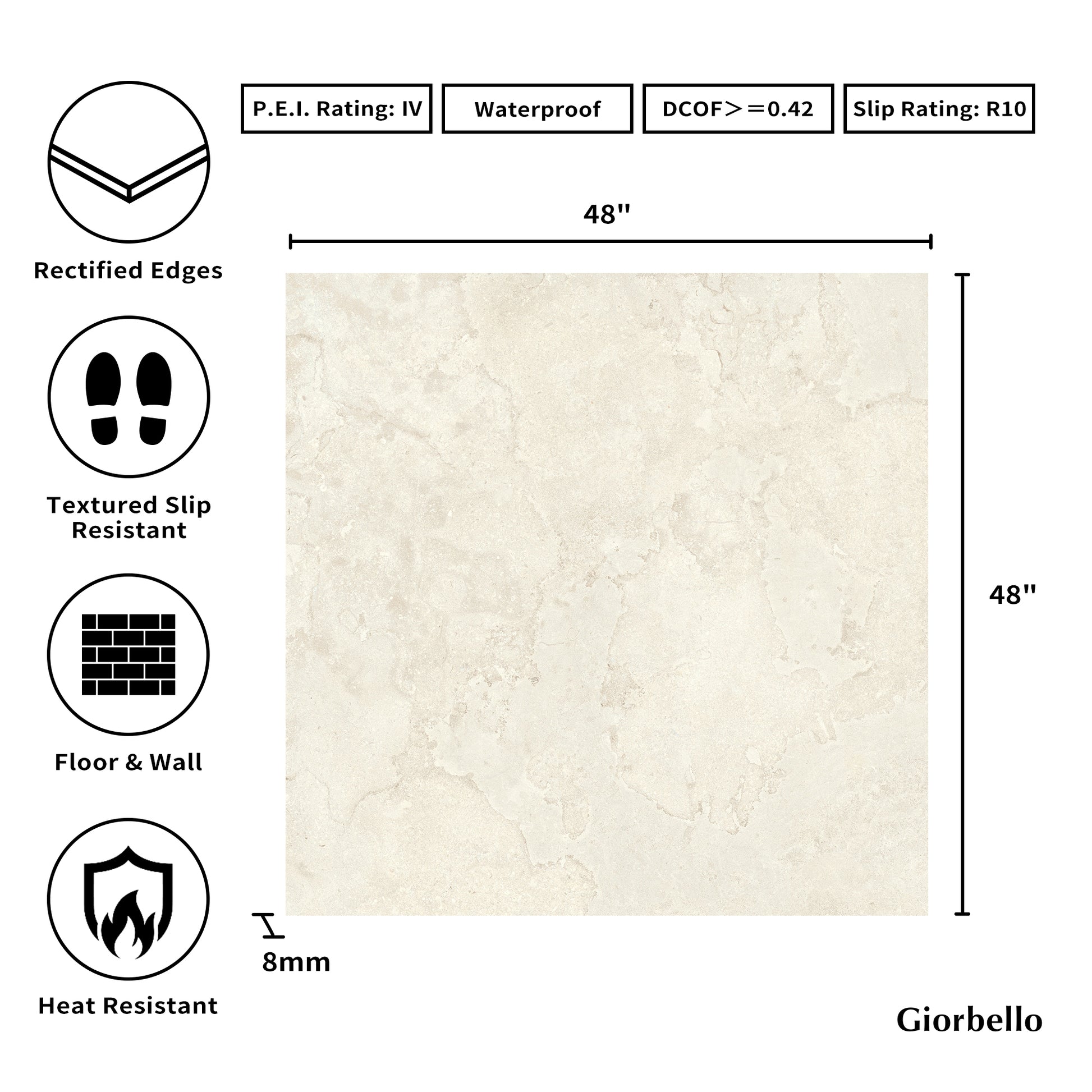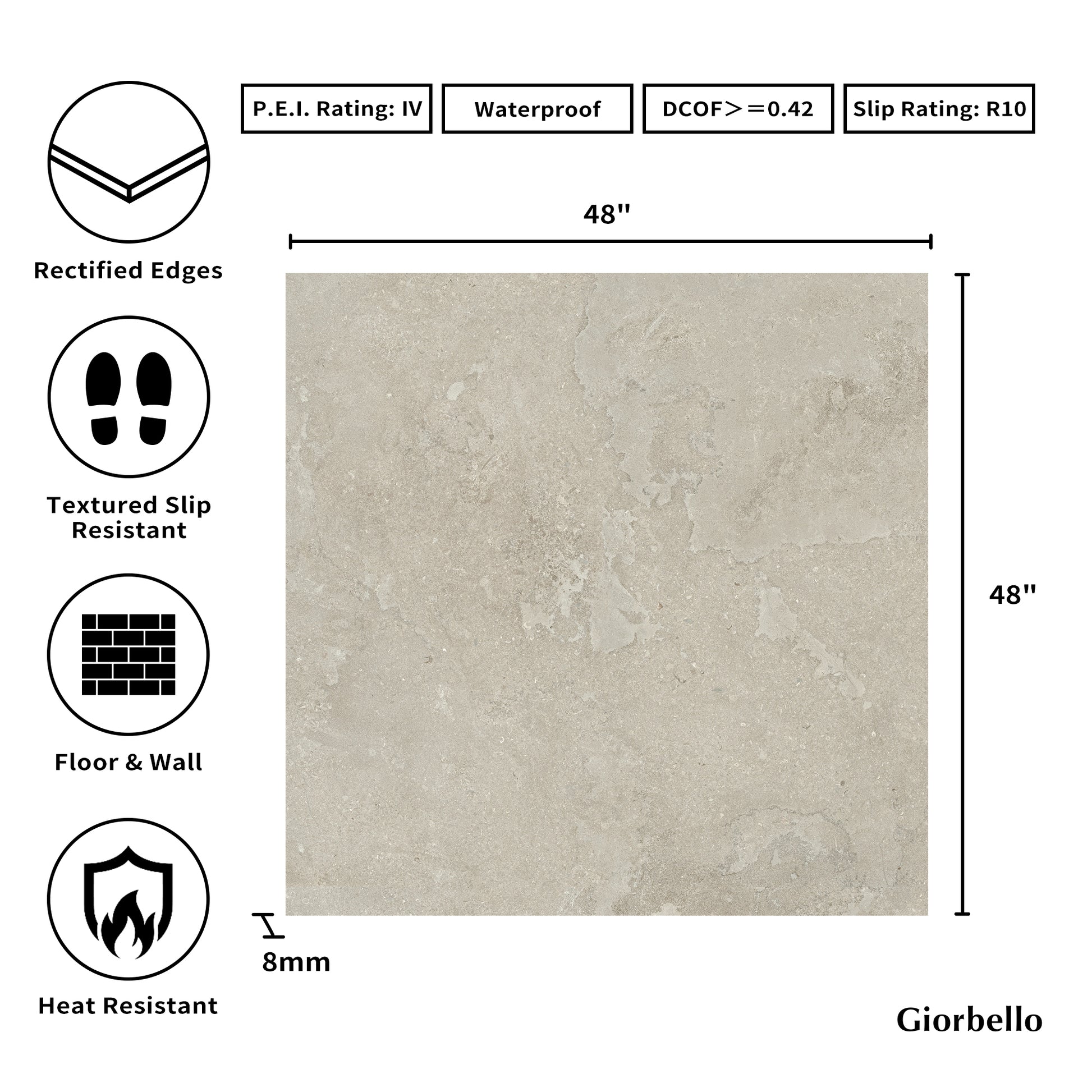 - Tile Size: 48” x 48"