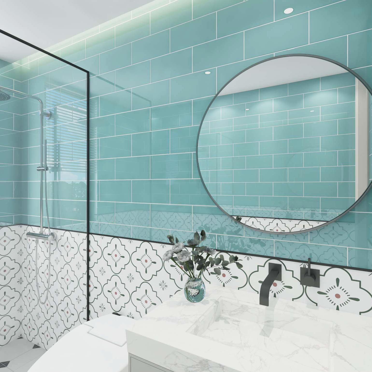 Giorbello's Teal is a blue-green color that exudes calmness, tranquility, and stability. It can play the part of retro or modern. The depth of glass and lightness of color create the excitement that sets glass tile apart from its more traditional counterparts. Our glass tile is 33% thicker than most tile on the market and features an affordable price and dazzling finish that resists rust, fire, and stains.