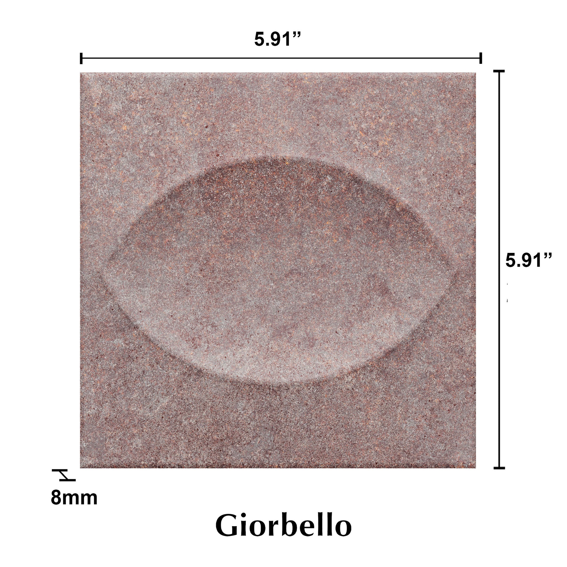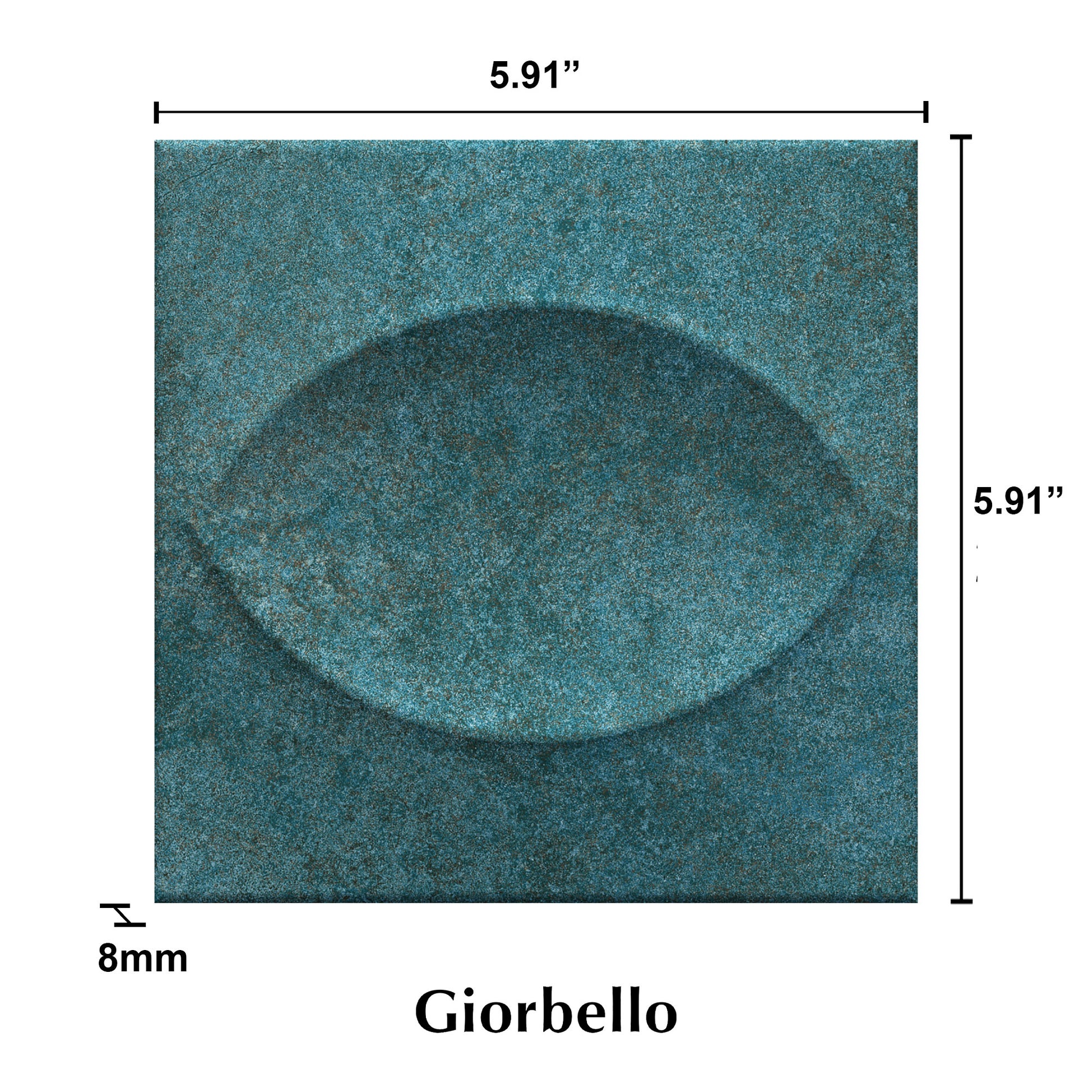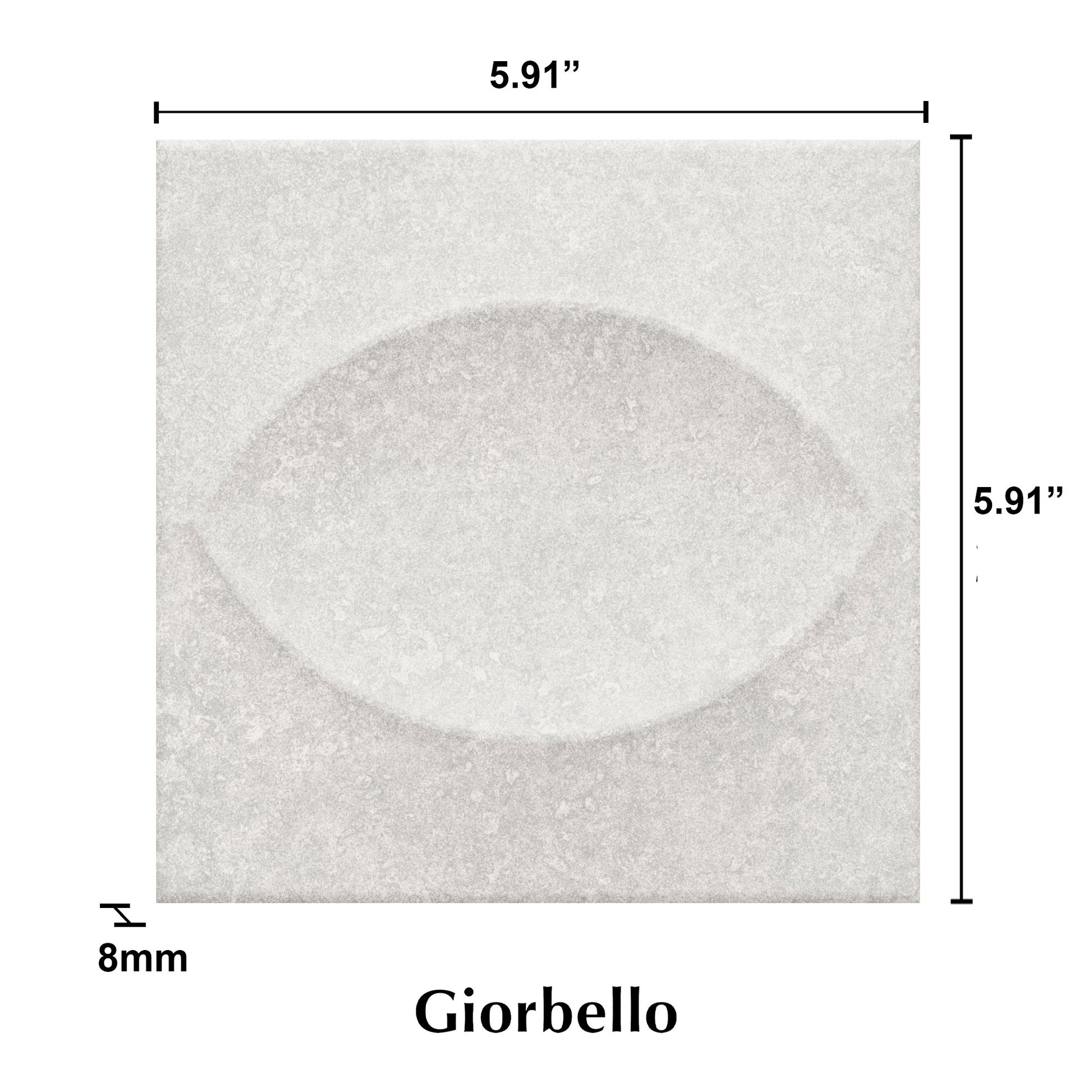 Giorbello's Tiffany 6" x 6" ceramic wall tile brings bold dimension and sculptural style to any space. Each tile features a dramatic 3D oval relief set within a textured, speckled surface-offering the artisanal charm of handmade ceramics with the durability of modern glazing. Perfect for feature walls, backsplashes, and creative accent installations, this tile blends geometric depth with contemporary flair.