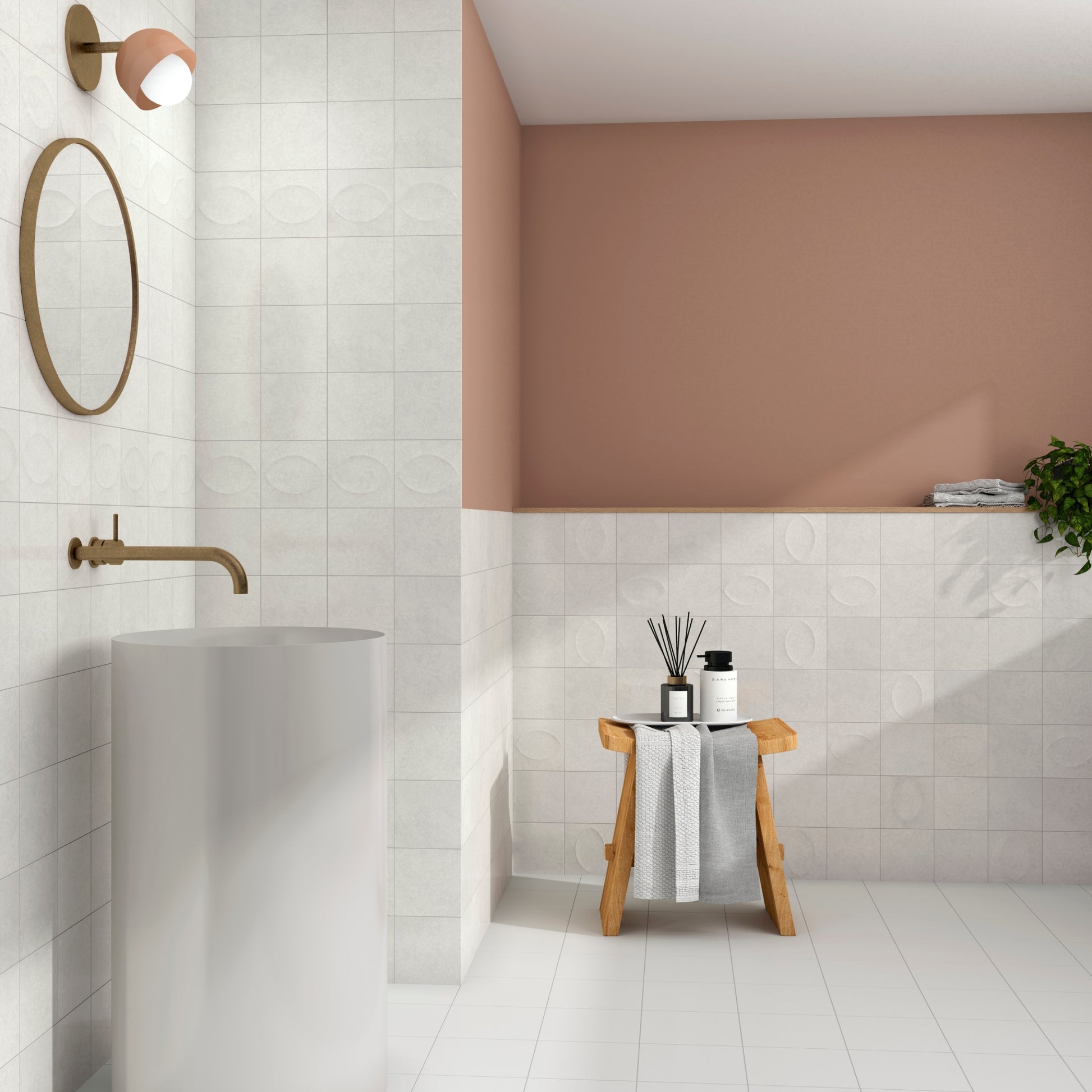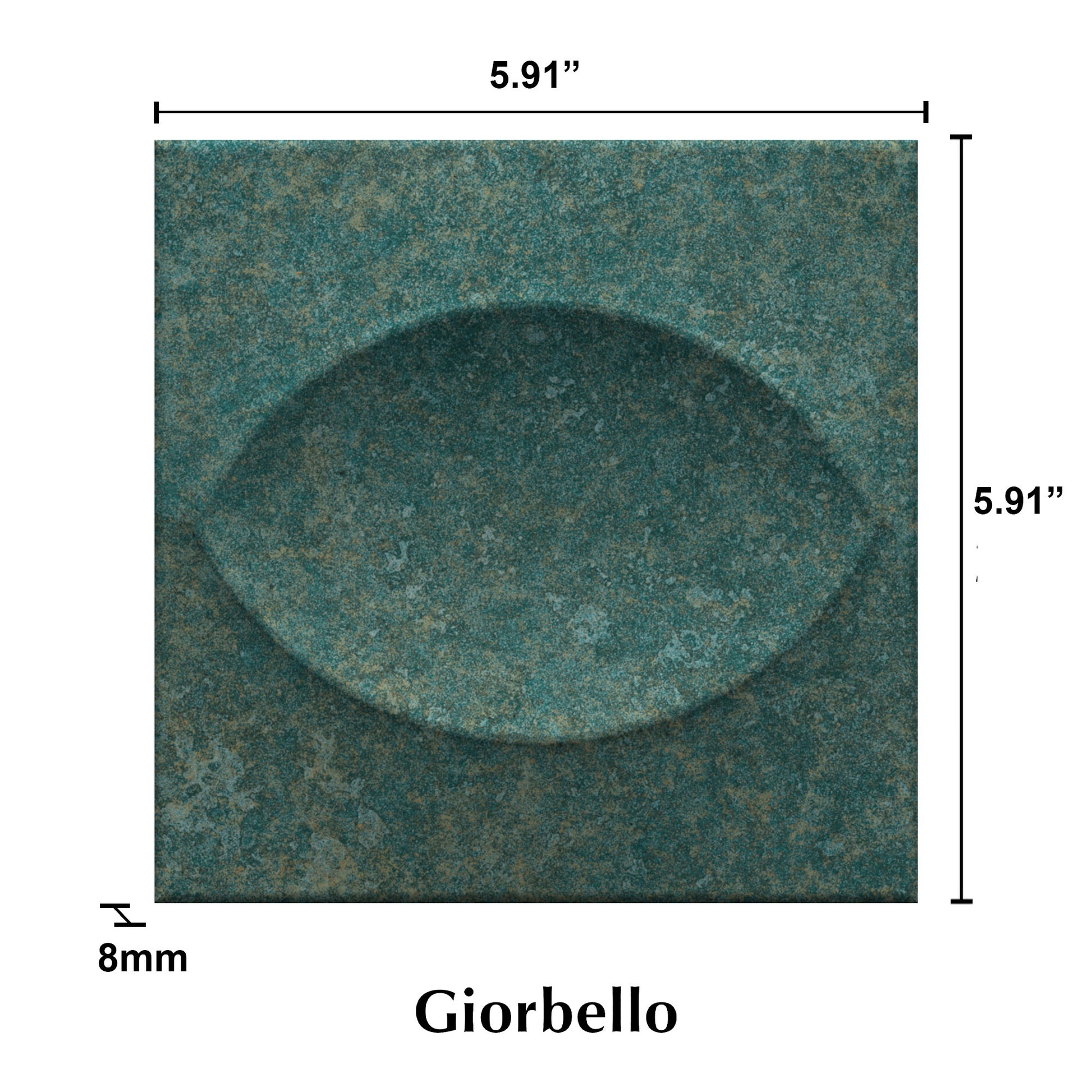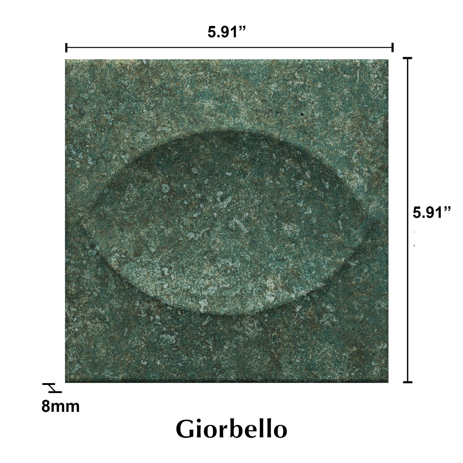 Giorbello's Tiffany 6" x 6" ceramic wall tile brings bold dimension and sculptural style to any space. Each tile features a dramatic 3D oval relief set within a textured, speckled surface-offering the artisanal charm of handmade ceramics with the durability of modern glazing. Perfect for feature walls, backsplashes, and creative accent installations, this tile blends geometric depth with contemporary flair.