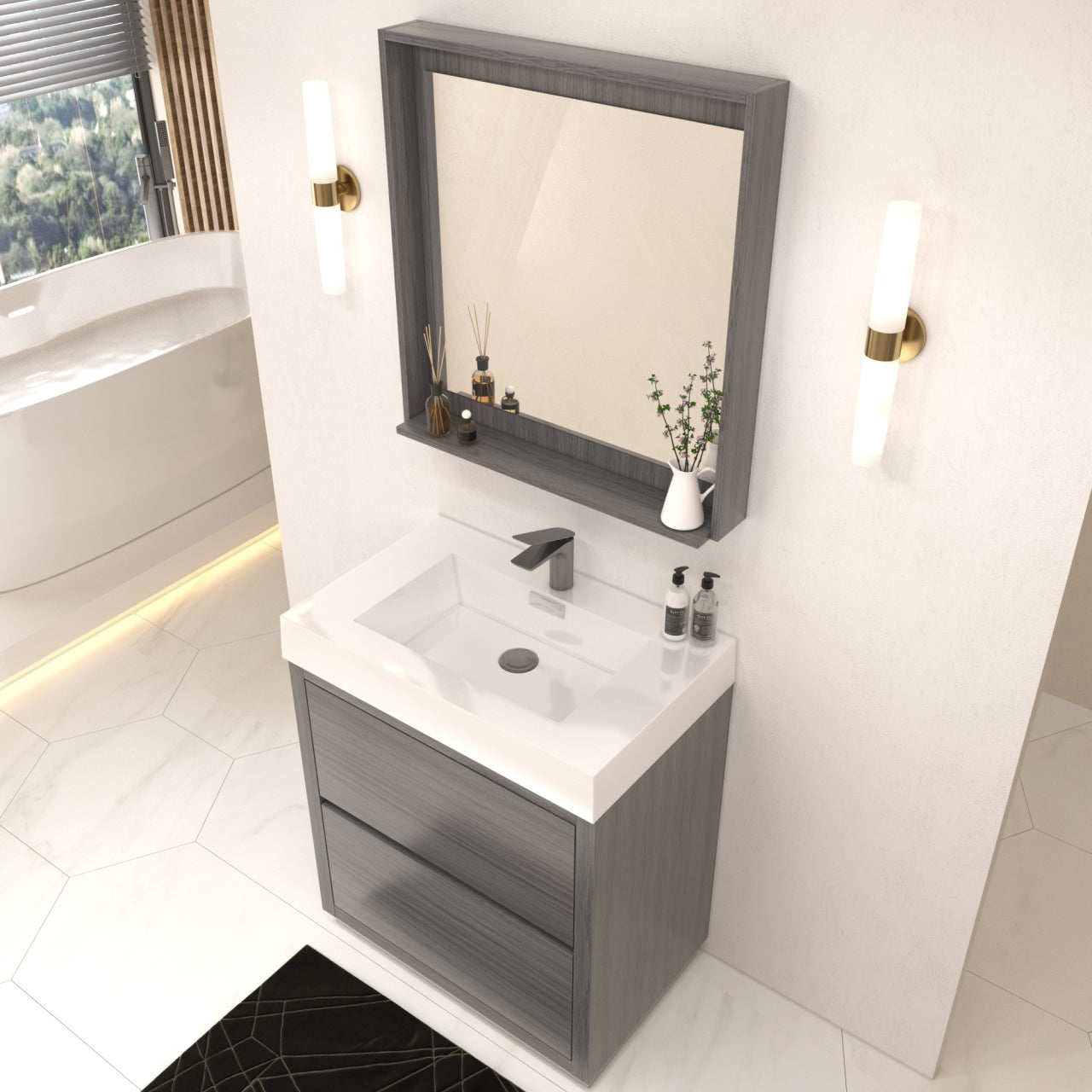 Designed for modern aesthetics, this vanity is the perfect foundation for a beautifully tiled bathroom. Whether paired with high-gloss ceramic tiles for a polished look or textured tiles for added depth, its refined design ensures versatility in any setting. Its sturdy construction and moisture-resistant materials make it ideal for bathrooms featuring large-format tiles, marble-inspired surfaces, or intricate herringbone patterns. Elevate your space with a vanity that seamlessly integrates with your chosen tile design, bringing sophistication and practicality to your bathroom remodel.