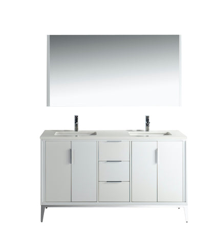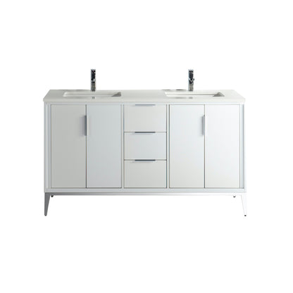 Transform your bathroom with the sleek and sophisticated Divani 60" Vanity. This modern vanity combines style and functionality, featuring a high-quality quartz countertop that offers durability and an elegant finish. The spacious design provides ample storage, making it perfect for organizing your bathroom essentials while maintaining a clean and clutter-free environment. Crafted with precision, the vanity's design exudes a contemporary charm that complements various bathroom aesthetics, from minimalist to luxurious.
