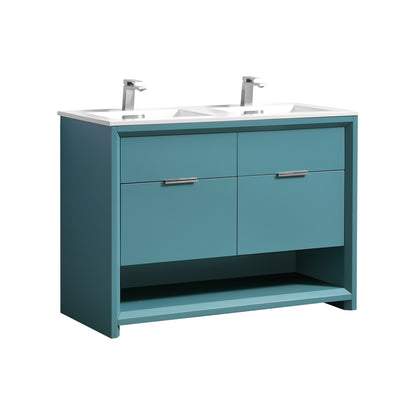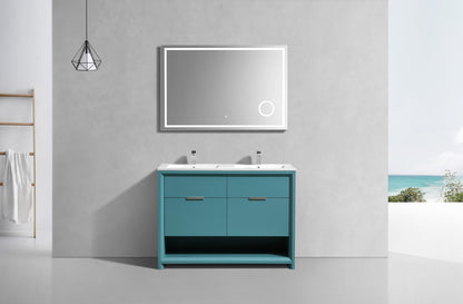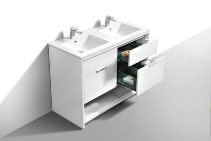 The KubeBath 48" Double Sink Nudo Modern Bathroom Vanity offers a sleek, contemporary design that enhances any bathroom with its clean lines and functional layout. Crafted with high-quality materials, this vanity features a durable, high-gloss finish that brings a sophisticated touch to your space. The spacious dual sinks provide ample room for daily use, while the integrated storage options ensure your bathroom stays organized and clutter-free. With a refined aesthetic, this vanity seamlessly combines style and practicality, making it a perfect choice for those seeking modern bathroom solutions.