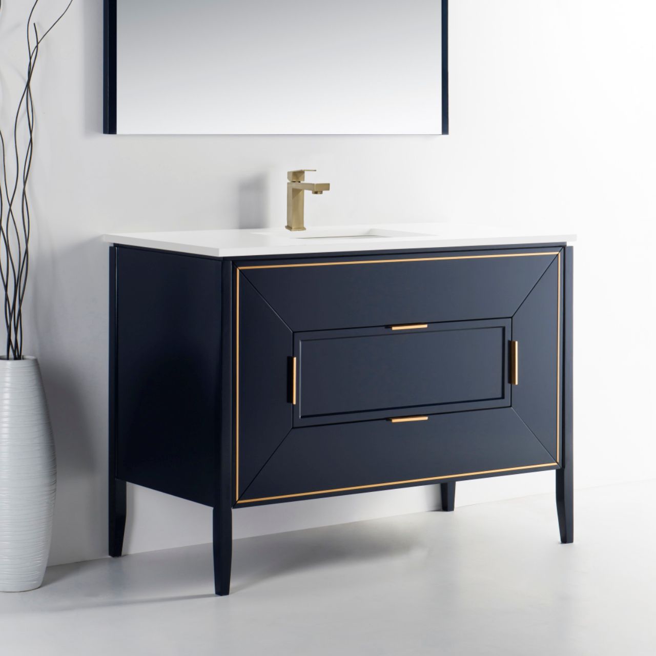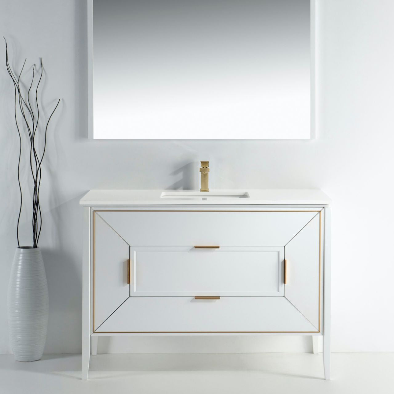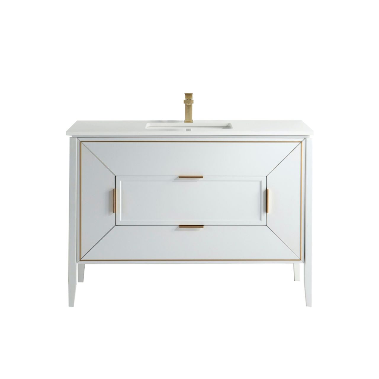The Vetro 48" Vanity with quartz countertop is the perfect addition to any modern bathroom. This sleek vanity offers a sophisticated design with a durable quartz surface that combines both beauty and functionality. The spacious storage provides ample room to keep your bathroom essentials organized while maintaining a clean, minimalist aesthetic. Its modern, streamlined look is perfect for a variety of bathroom styles, making it an ideal choice for both small and large spaces. The quartz countertop is easy to maintain and adds an elegant touch to your home.